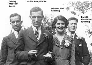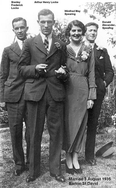 Wedding of Arthur Locke and Winifred Spearing at Barton St. David, 1935. Also pictured are Stanley Locke and Donald Spearing.