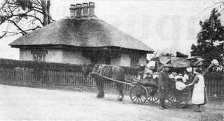 Egbert Cabble, with possibly Julie Nicholson in 1920 with his ironmongery, horse and cart, outside Kingweston Lodge.
